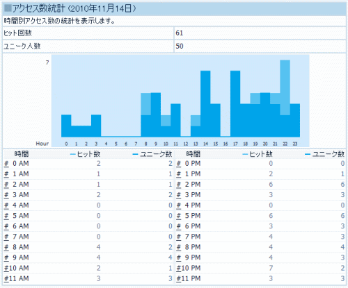 11月14日:アクセス数61回、ユニーク数50回