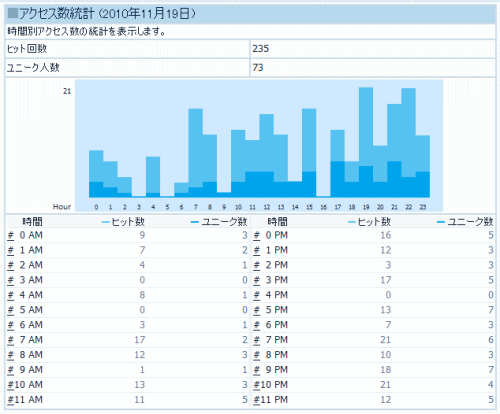 11月19日:アクセス数235回、ユニーク数73回