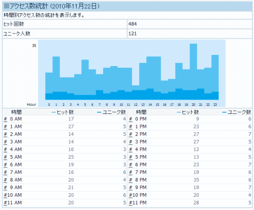 11月22日:アクセス数484回、ユニーク数121回